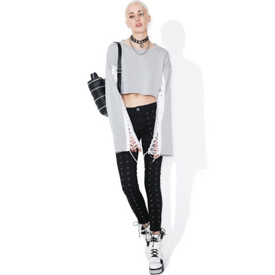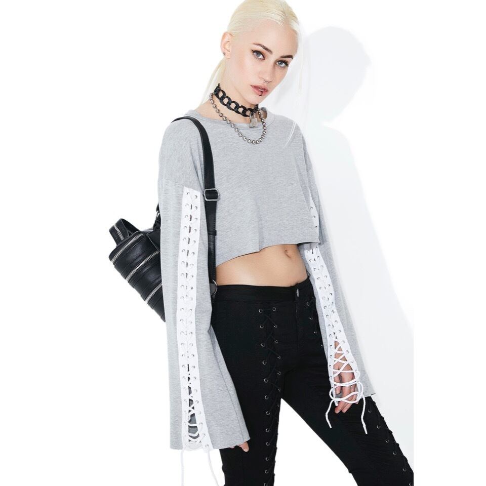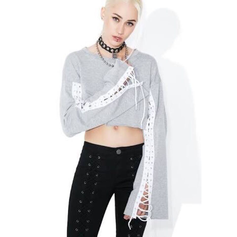 ★50%off★DOLLSKILL “SMOKE FINISH LINE LACEUP SWEATSHIRT” セール 海外ファッション インポート クロップド クロップ スウェット 人気商品 | SHOWGIRLS TOKYO