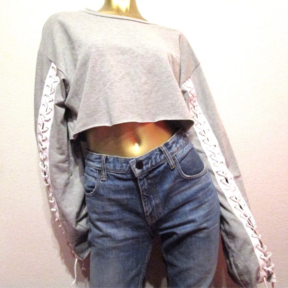 アメリカの有名なセレクトショップ、DOLLSKILLより袖のレースアップがかわいいスウェットです。