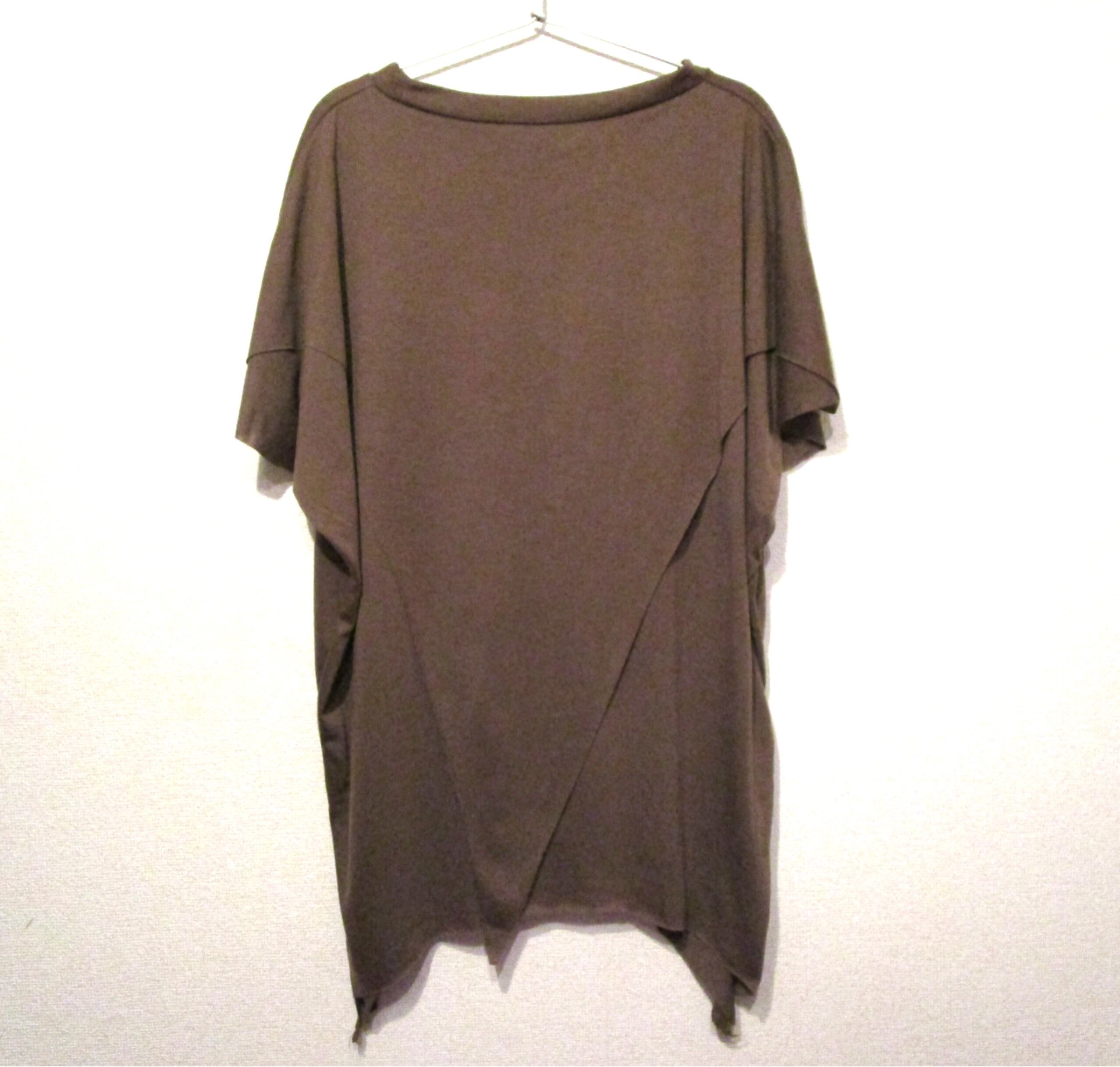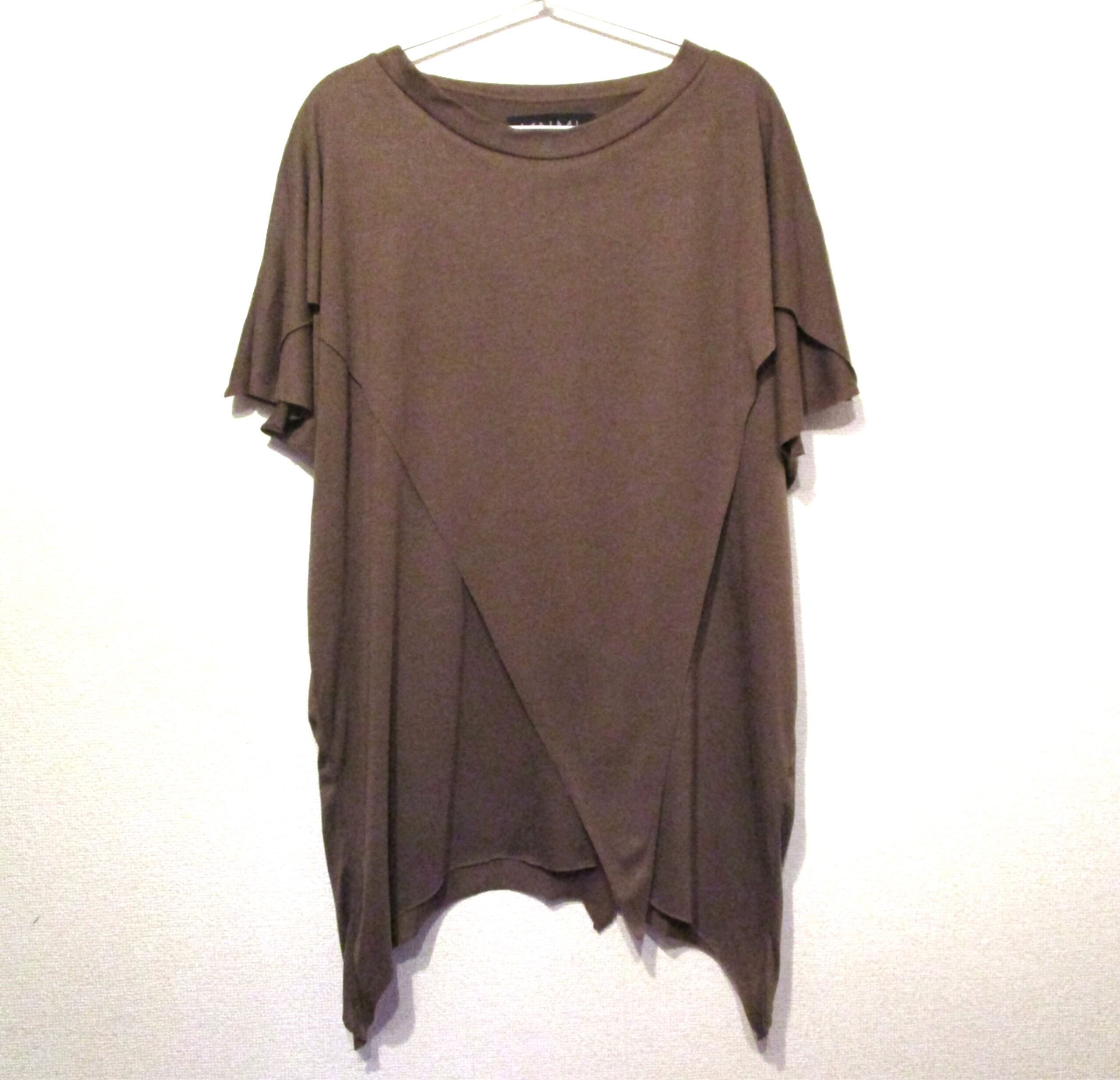 この商品はTシャツに布でレイヤードをしていて色々な着方の出来るユニークなアイテムです。