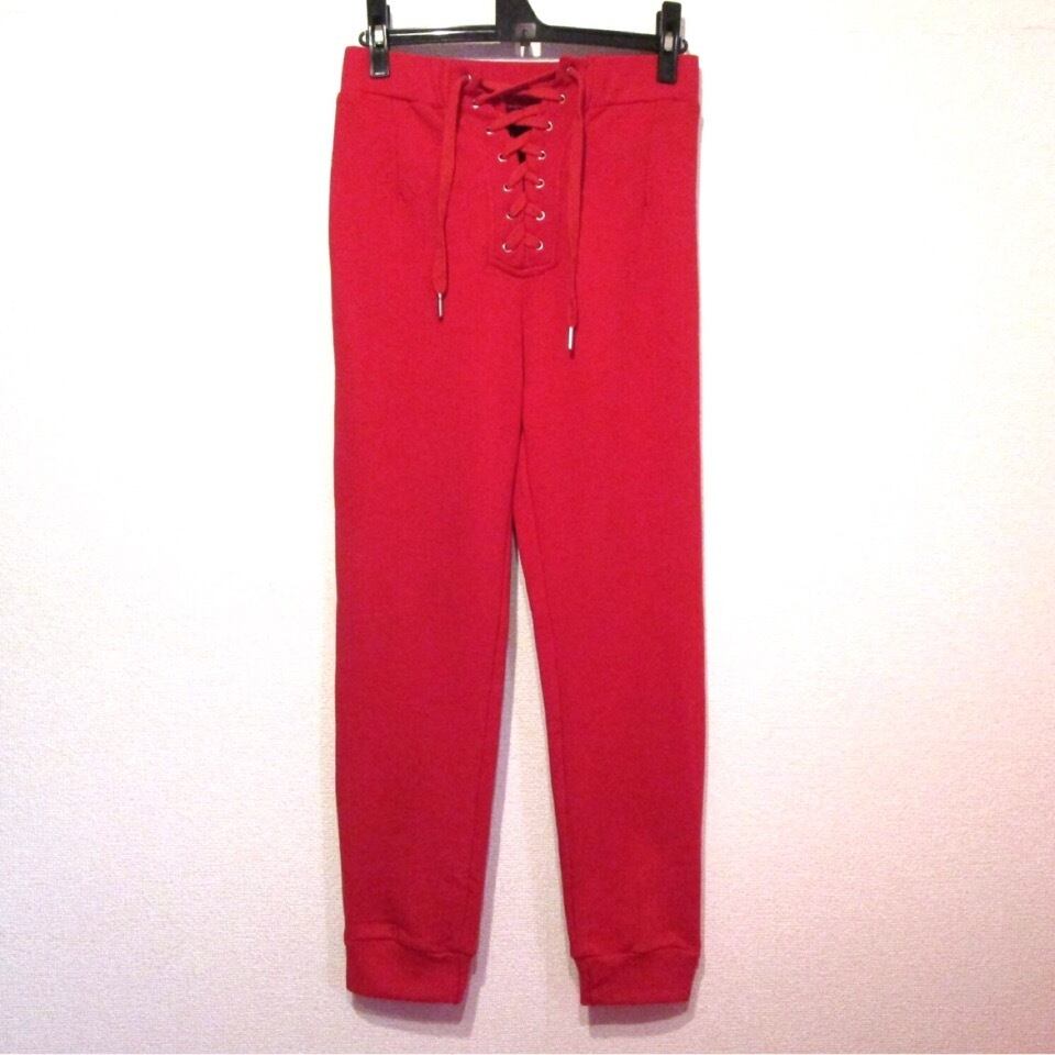 トラックパンツは股上部分がレースアップになっており、タイト目のシルエットがとってもスマートなパンツです。