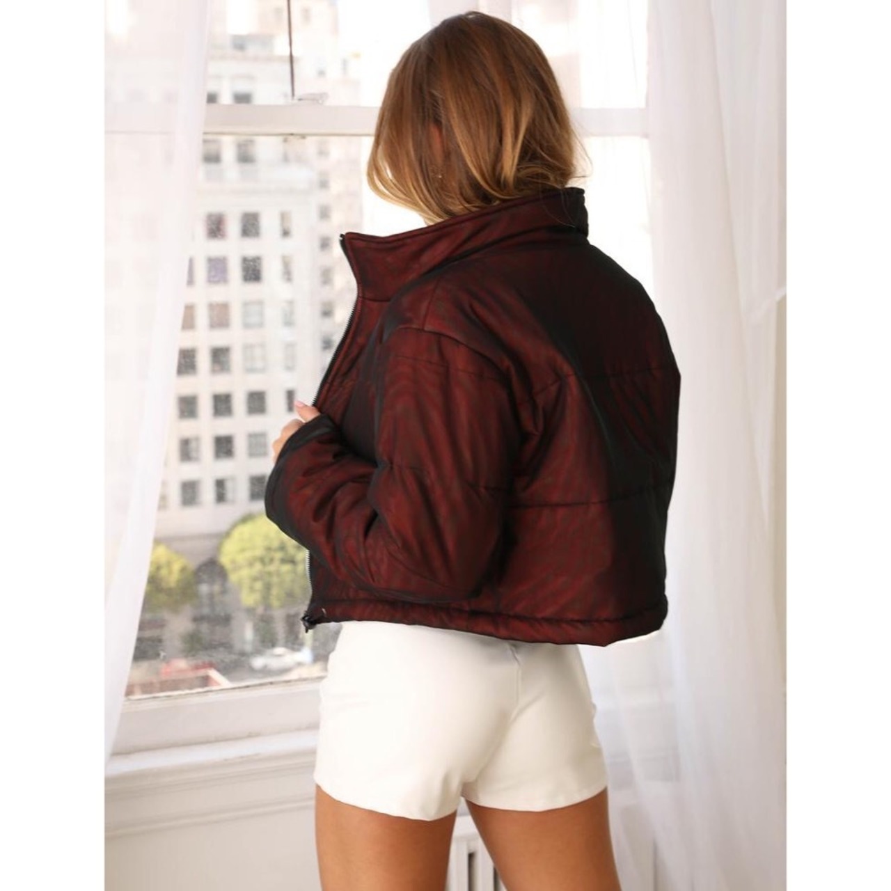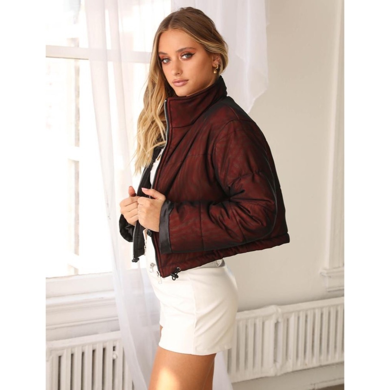 オーストラリアの大人気ブランド I.AM.GIAの抑えた赤のメッシュ素材のパフジャケットです。メッシュが色々な表情になるのでとても面白いですよ。